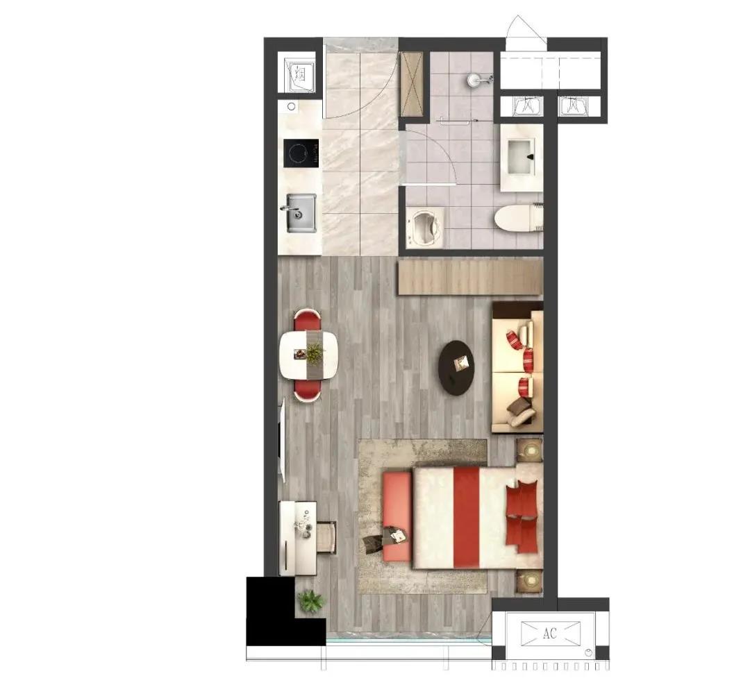 珑庭公寓主打45㎡小户型公寓,1室1厅1厨1卫,全配精装交付,户型方正,是目前麒麟唯一在售的酒店式真公寓,非常值得一看!