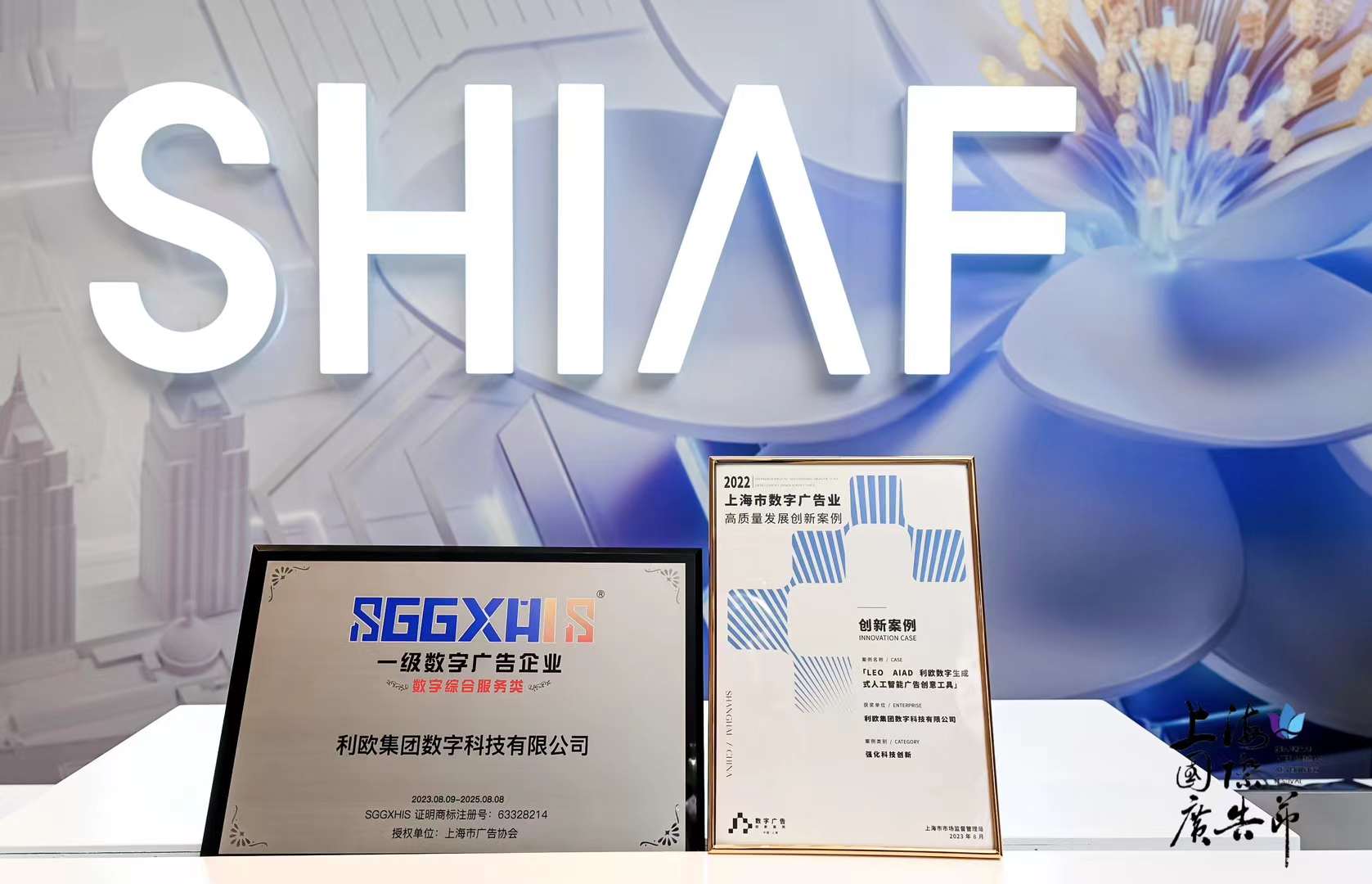 在开幕式现场,利欧数字被授予上海市广告协会数字广告证明商标“SGGXHIS一级数字广告企业(数字综合服务类)”,利欧数字AIGC生态平台LEO AIAD成功入选“上海市数字广告业高质量发展创新案例”。作为中国本土的数字营销企业,利欧数字在时代变革中不断优化、升级,在数字经济和数字中国的发展浪潮中,成为勇立潮头的领军代表。